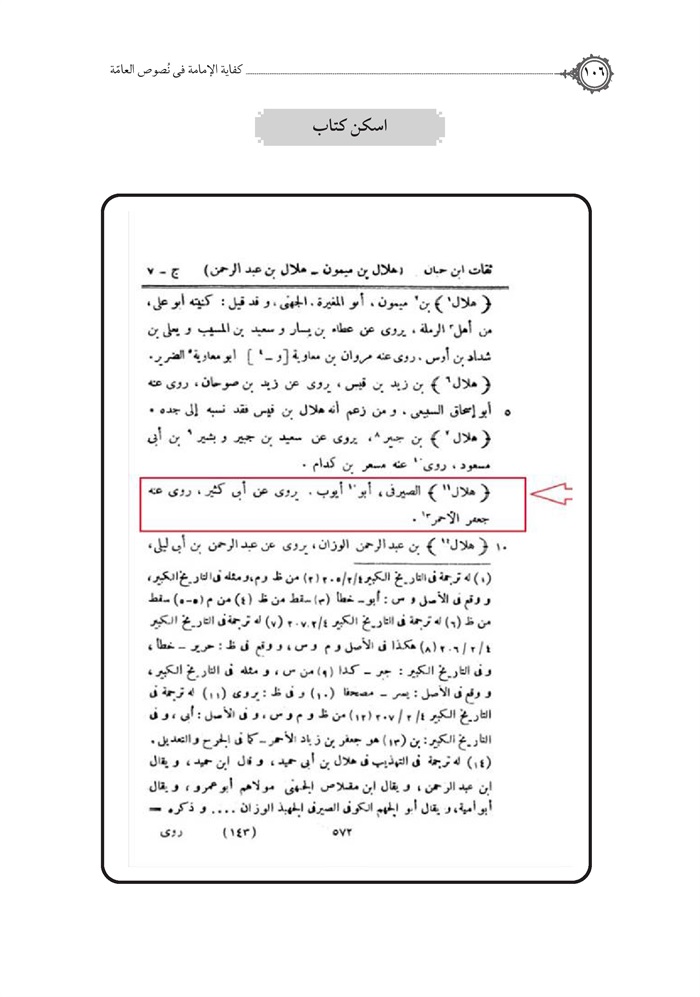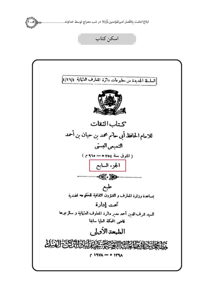 26. الثقات، المؤلف: محمد بن حبان بن أحمد بن حبان بن معاذ بن معبد، التميمي، أبو حاتم الدارمي، البستي (المتوفی: 354 ق)، طبع بإعانة: وزارة المعارف للحكومة العالية الهندية، تحت مراقبة: الدكتور محمد عبد المعید خان مدير دائرة المعارف العثمانية، الناشر: دائرة المعارف العثمانية بحيدر آباد الدكن الهند الطبعة الأولى، 1393 ه_ = 1973، عدد الأجزاء: 9.