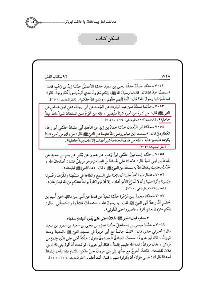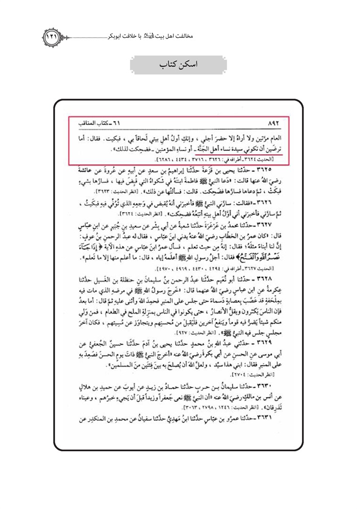 مخالفت اهل بیتعلیهم السلام با خلافت ابوبکر ( بُطلان خلافت ابوبکر تنها با سه روایت از صحیح بخاری) 111