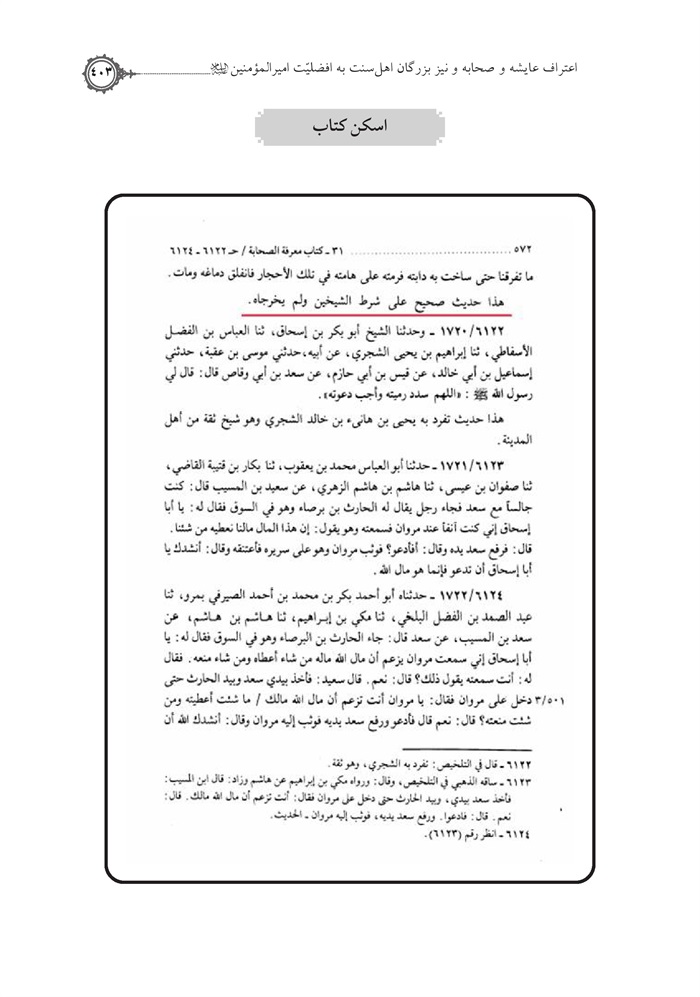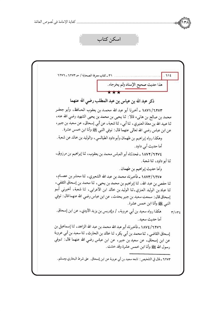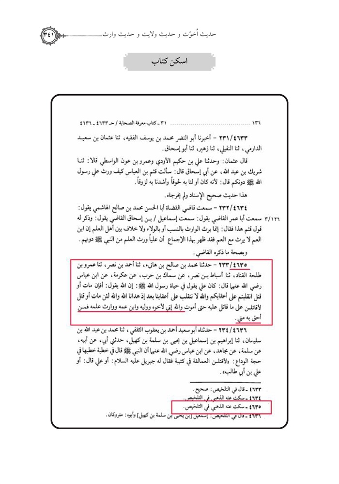روایت دوم با تصحیح حاکم نیشابوری و ذهبی134