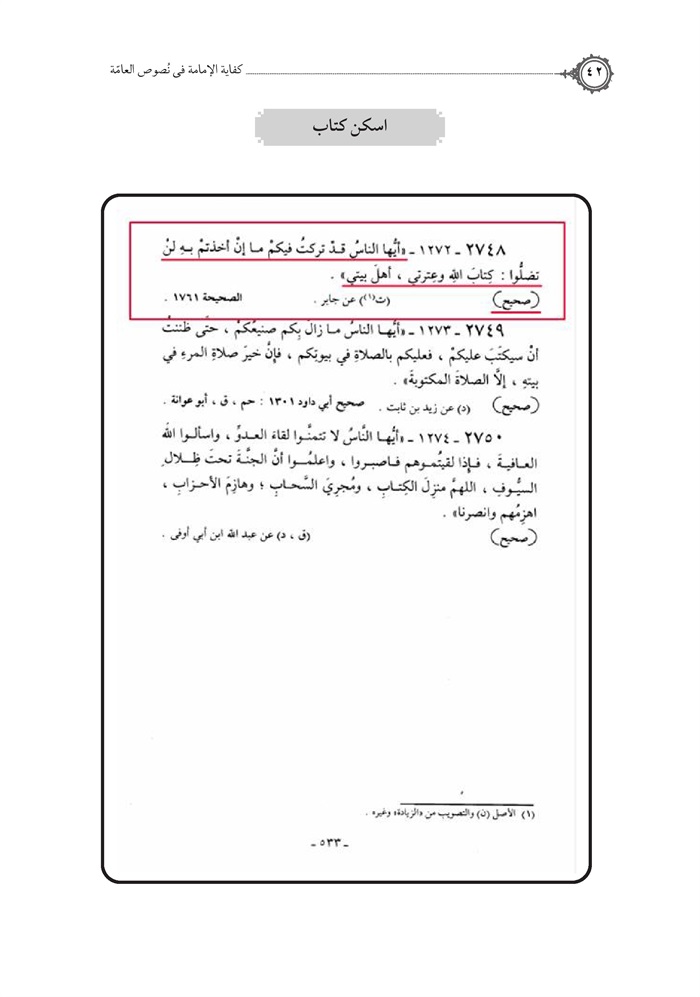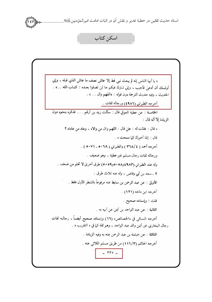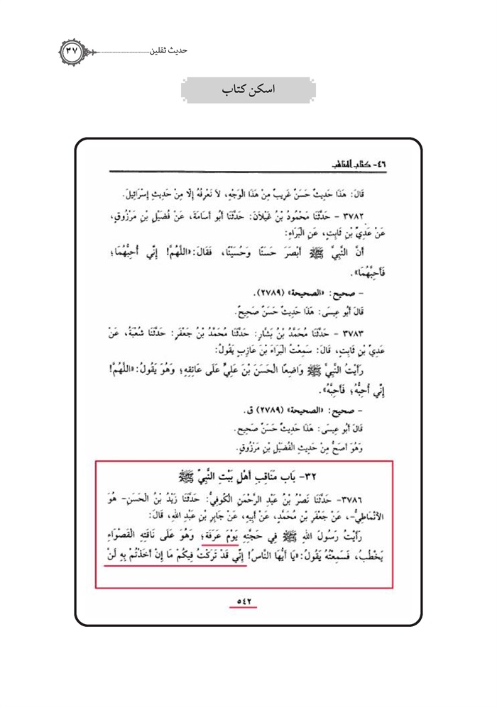 اسناد حدیث ثقلین در خطبۀ غدیر و نقش آن در اثبات امامت امیرالمؤمنین علیه السلام 125