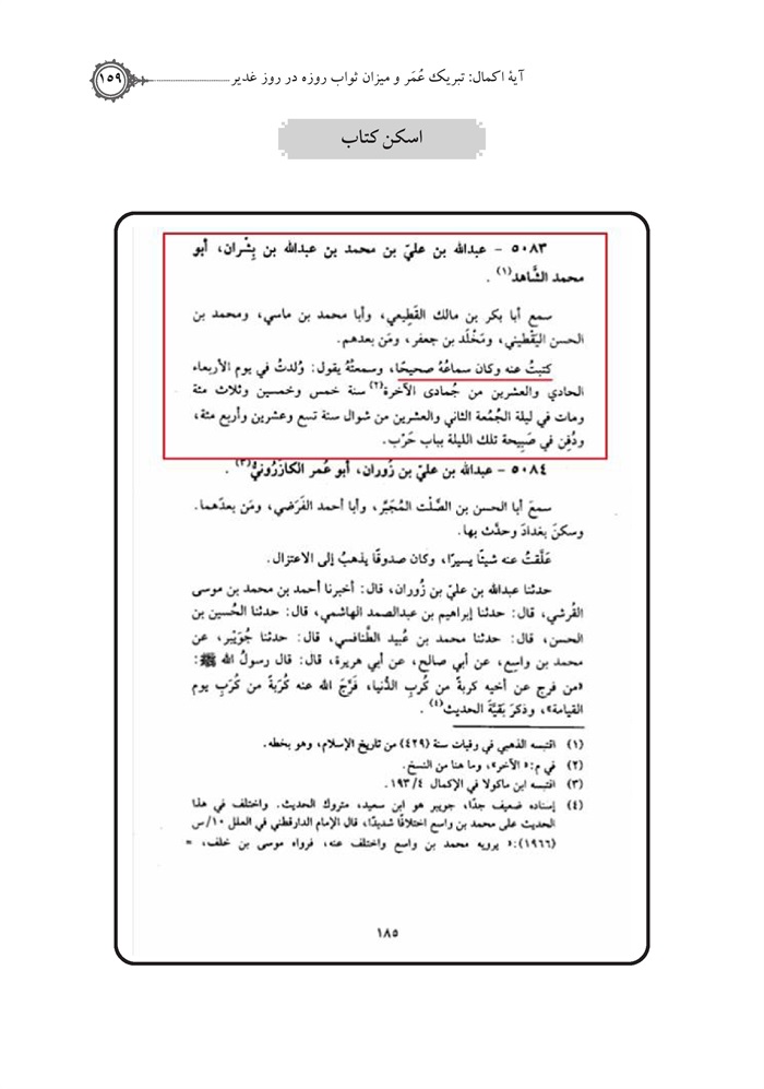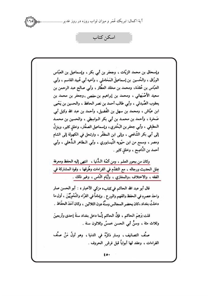 نزول آیۀ اکمال و تبریک عُمَر به امیرالمؤمنین علیه السلام و میزان ثواب روزه در روز غدیر149