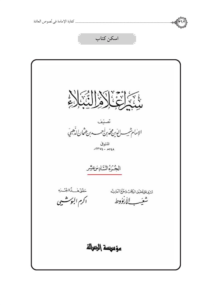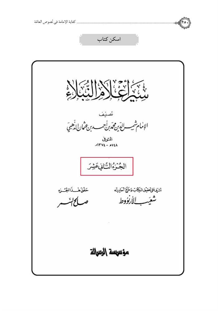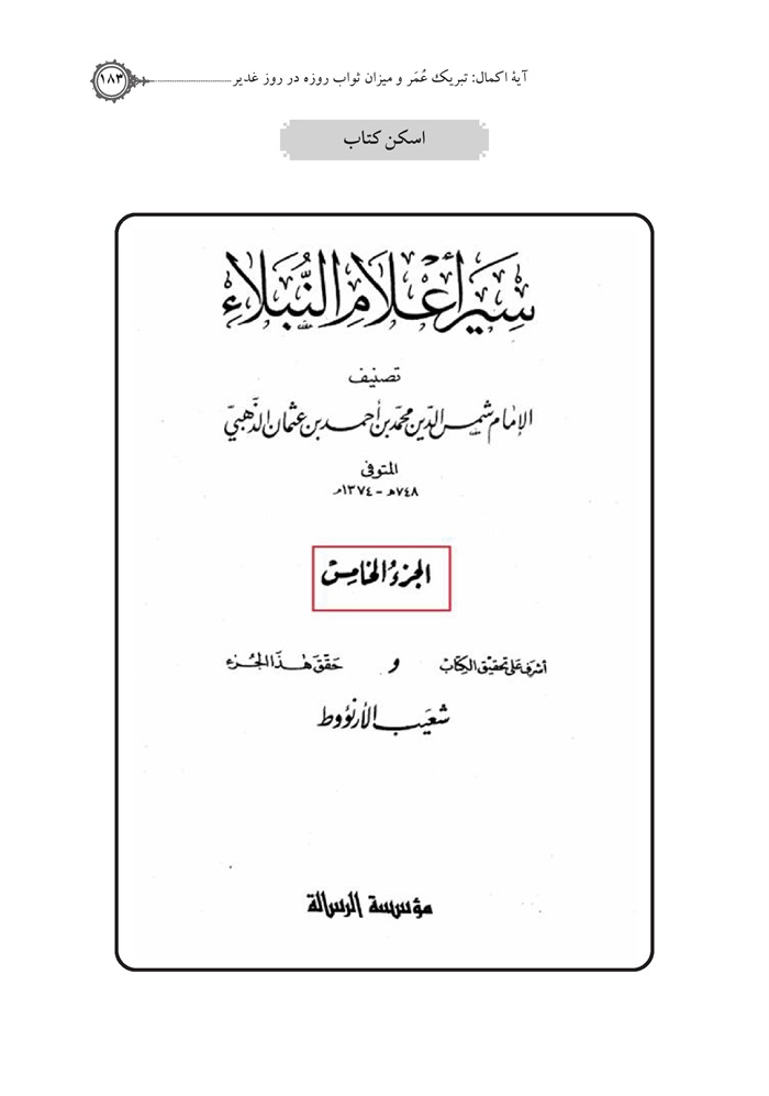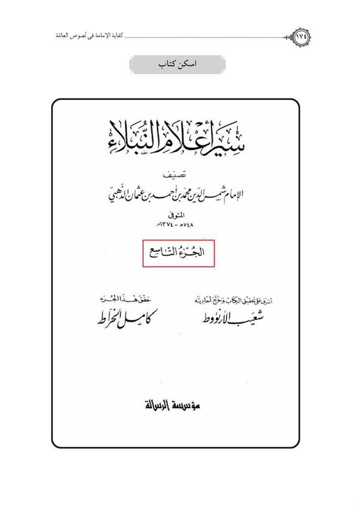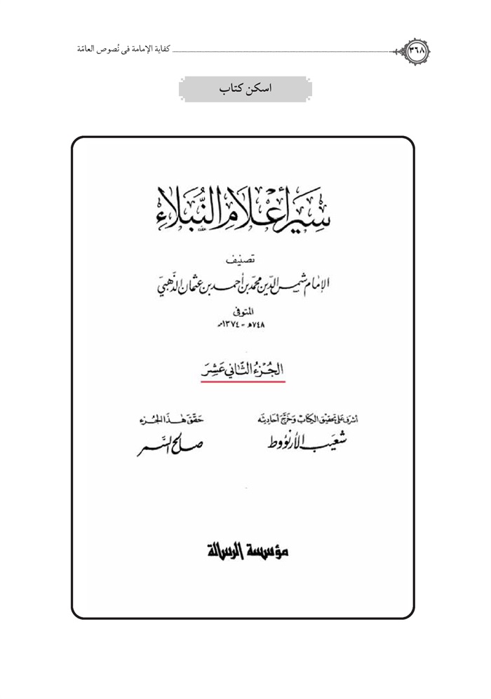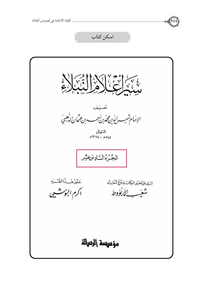 34. سیر أعلام النبلاء المؤلف : شمس الدين أبو عبد الله محمد بن أحمد بن عثمان بن قايماز الذهبي (المتوفی: 748 ق)، المحقق: مجموعة من المحققين بإشراف الشيخ شعيب الأرناؤوط، الناشر: مؤسسة الرسالة، الطبعة الثالثة ، 1405 ق / 1985م. عدد الأجزاء: 25 (23) ومجلدان فهارس).
