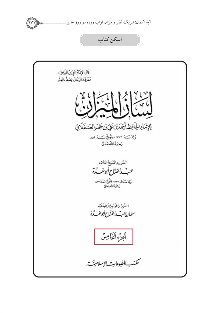 48. لسان الميزان ، المؤلف: أبو الفضل أحمد بن على بن محمد بن أحمد بن حجر العسقلانی (المتوفی: 852 ق)، المحقق: عبد الفتاح أبو غدة ، الناشر: دار البشائر الإسلامية، الطبعة الأولى، 2002م عدد الأجزا 10 ، العاشر فهارس.
