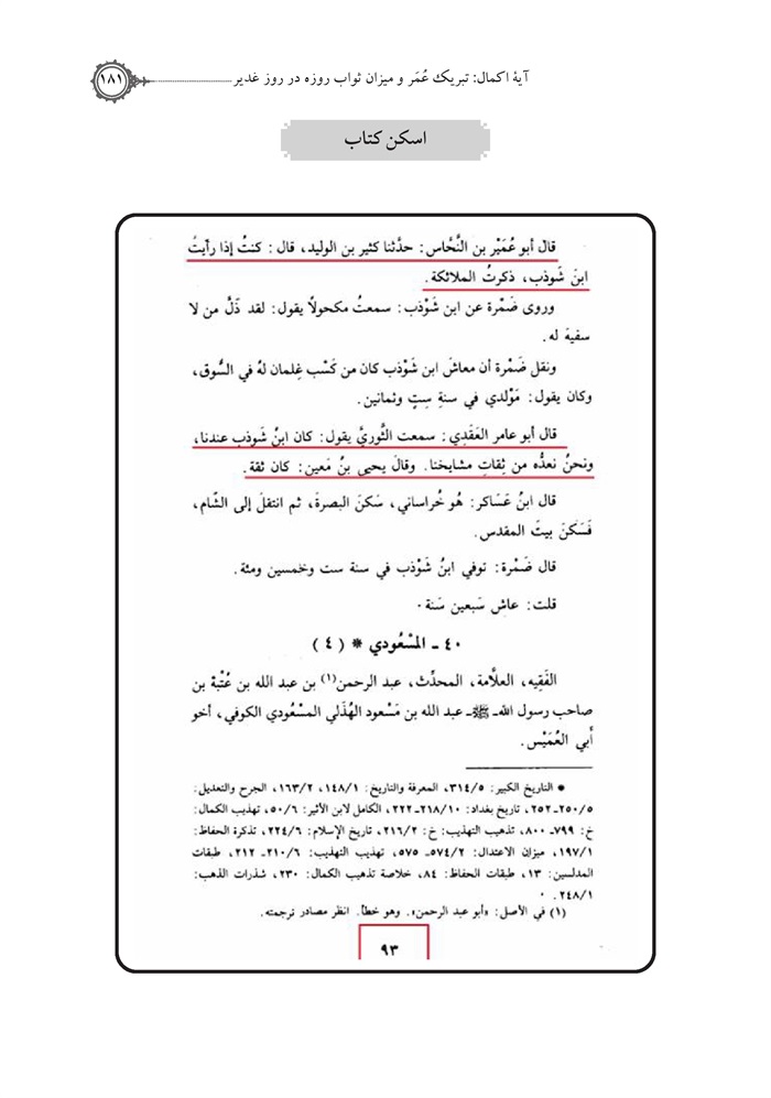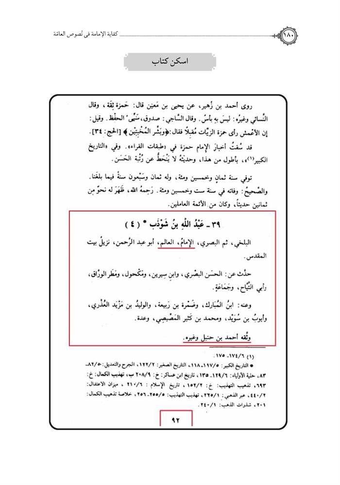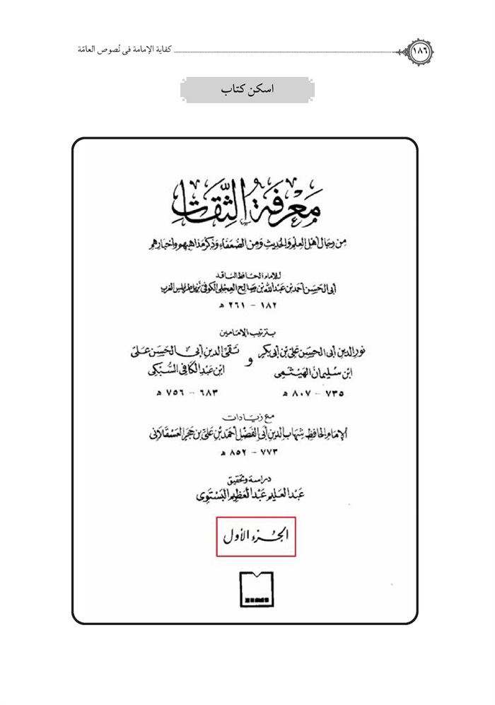 ١٠. تاريخ الثقات المؤلف: أبو الحسن أحمد بن عبد الله بن صالح العجلی الکوفی (المتوفی: 261 ق)، الناشر: دار الكتب العلمية - لبنان.
