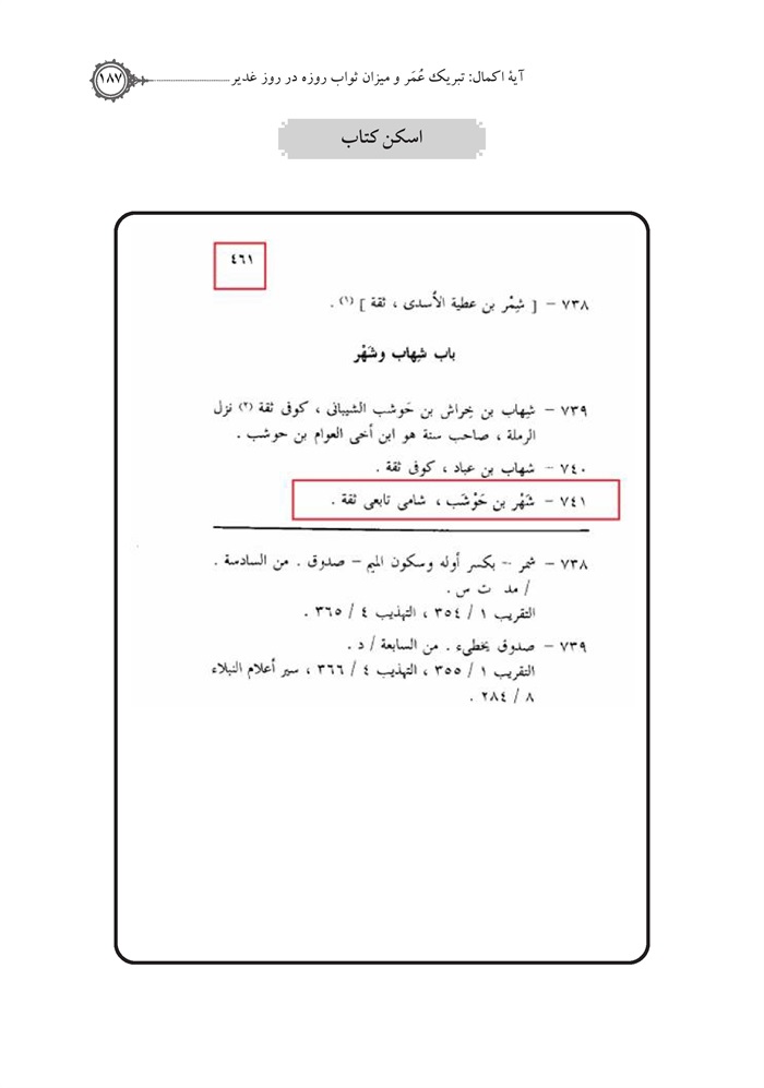 24. تقريب التهذيب، المؤلف: أبو الفضل أحمد بن علی بن محمد بن أحمد بن حجر العسقلانی (المتوفی: 852 ق )، المحقق: عادل ،مرشد الناشر: موسسة الرسالة - لبنان.