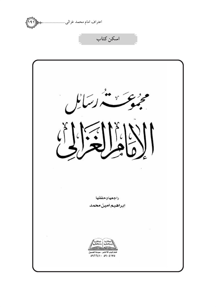 51. مجموعة رسائل الإمام الغرالى، المؤلف: أبو حامد محمد بن محمد الغزالي الطوسی (المتوفی : 505ق)، حققه ابراهیم امین محمد الناشر: المكتبة التوفيقية - القاهرة - مصر.