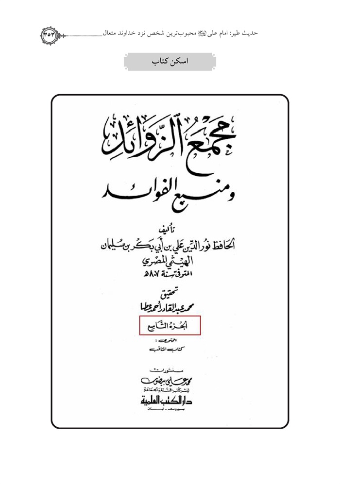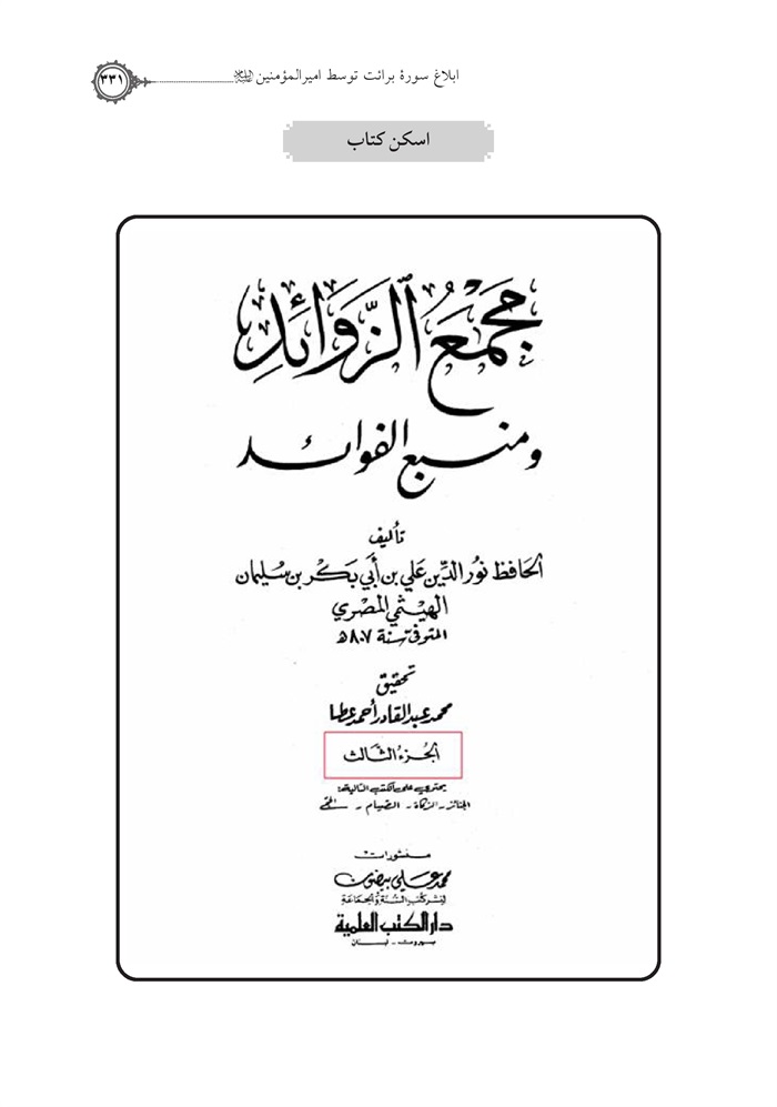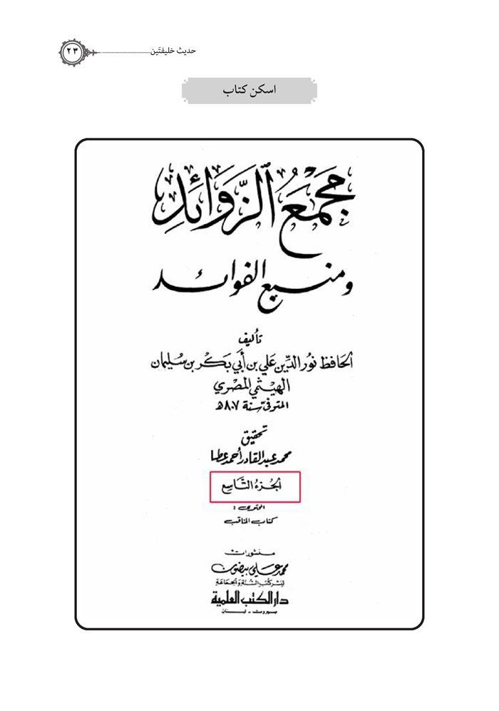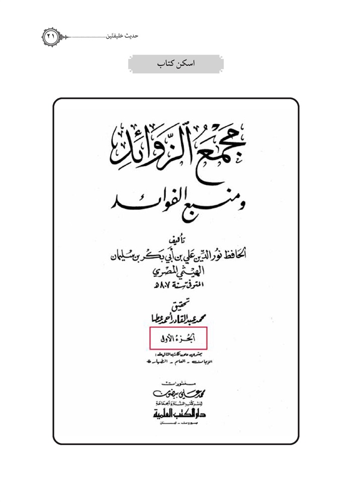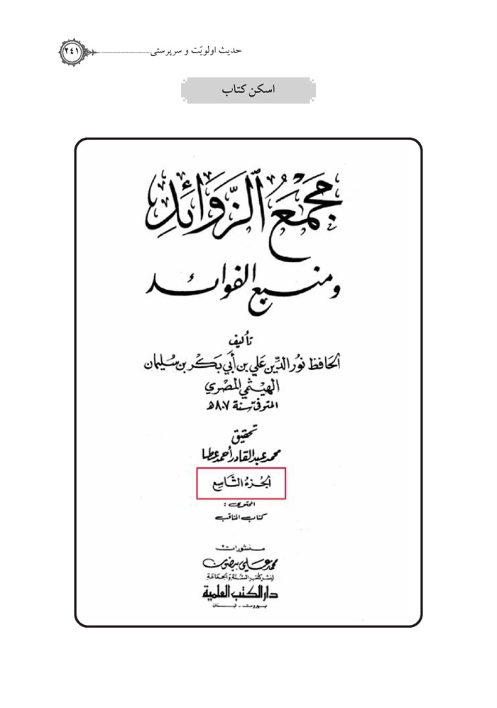 50. مجمع الزوائد ومنبع الفوائد المؤلف: أبو الحسن نورالدین علی بن أبي بكر بن سليمان الهيثمي (المتوفی: ٨٠٧ ق )، المحقق: محمد عبد القادر احمد عطا، الناشر: دار الكتب العلمية - بيروت - لبنان.