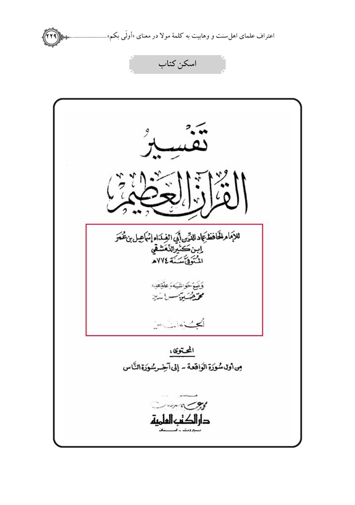 21. تفسير القرآن العظيم لابن كثير، المؤلف: أبو الفداء إسماعيل بن عمر بن كثير القرشي البصري ثم الدمشقى (المتوفی 774 ،ق)، المحقق: محمد حسین شمس الدين الناشر: دار الكتب العلمية، منشورات محمد على بيضون - بيروت، الطبعة الأولى - 1419ق.