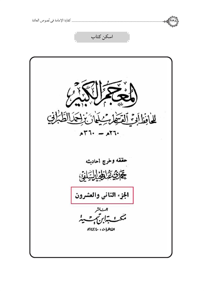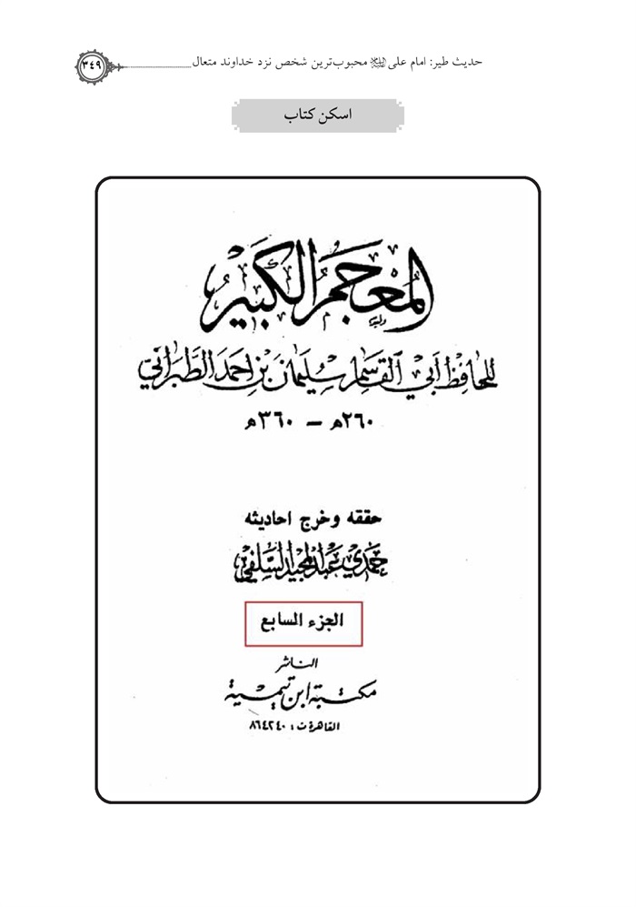 62. المعجم الكبير المؤلف: سليمان بن أحمد بن أيوب بن مطير اللخمي الشامي، أبو القاسم الطبراني (المتوفى: 360 ق)، المحقق: حمدى بن عبد المجيد السلفى دار النشر مكتبه ابن تيميه - القاهرة الطبعة الثانية، عدد الأجزاء: 25.