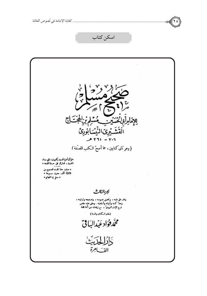 35. صحیح مسلم ، المؤلف: مسلم بن الحجاج أبو الحسن القشيري النيسابورى (المتوفی: 261ق) ، المحقق: محمد فؤاد عبد الباقى الناشر: دار الحديث قاهرة.