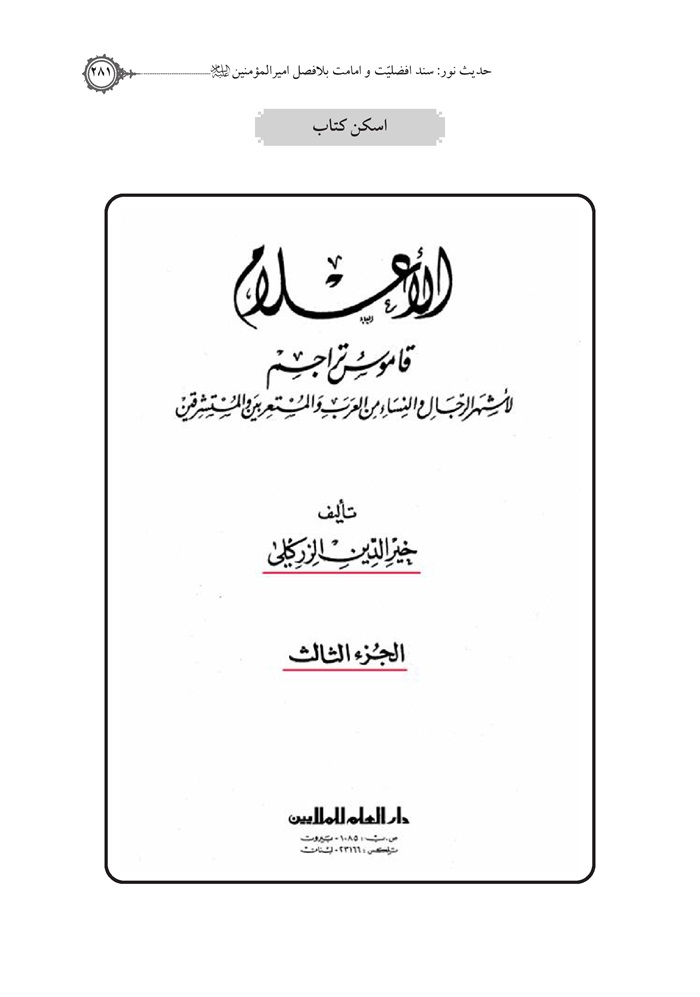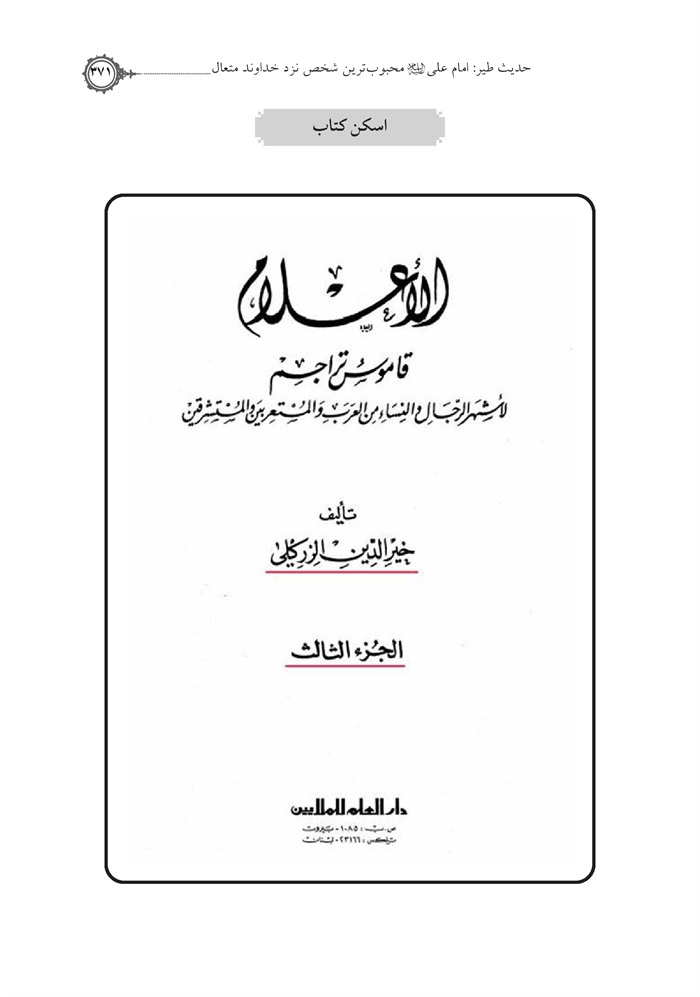 4. الأعلام المؤلف: خیر الدین بن محمود بن محمد بن علی بن فارس الزركلی الدمشقی المتوفی: 1396 ق، الناشر: دار العلم للملايين، الطبعة الخامسة عشر – أيار / مايو ٢٠٠٢ م.