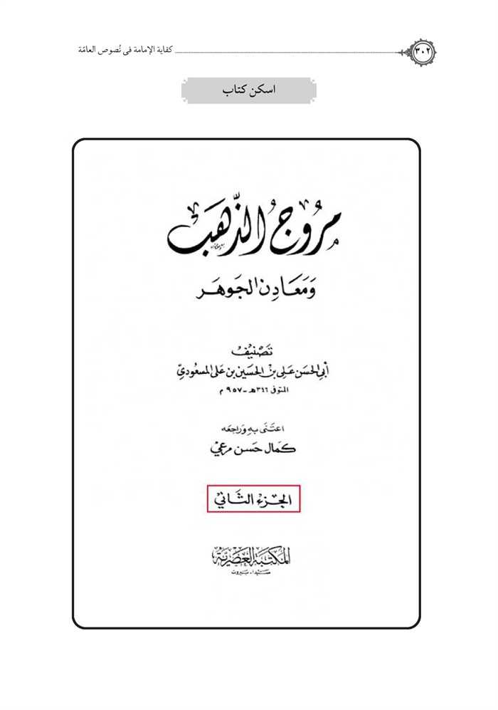 54. مروج الذهب و معادن الجوهر المؤلف: أبي الحسن علی بن الحسين بن على المسعودي (المتوفى: 346 ق) الناشر: المكتبة العصرية - بيروت، الطبعة الأولى، 1425 ق.