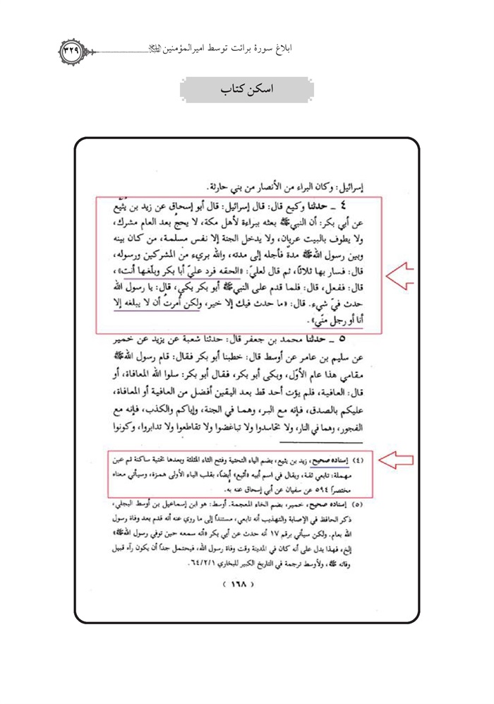 ابلاغ سورۀ برائت توسط امیرالمؤمنین و اثبات افضلیت و امامت ایشان بر ابوبکر325