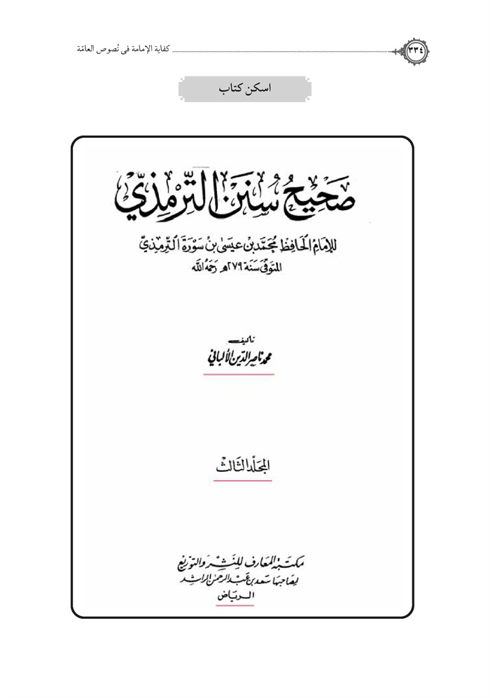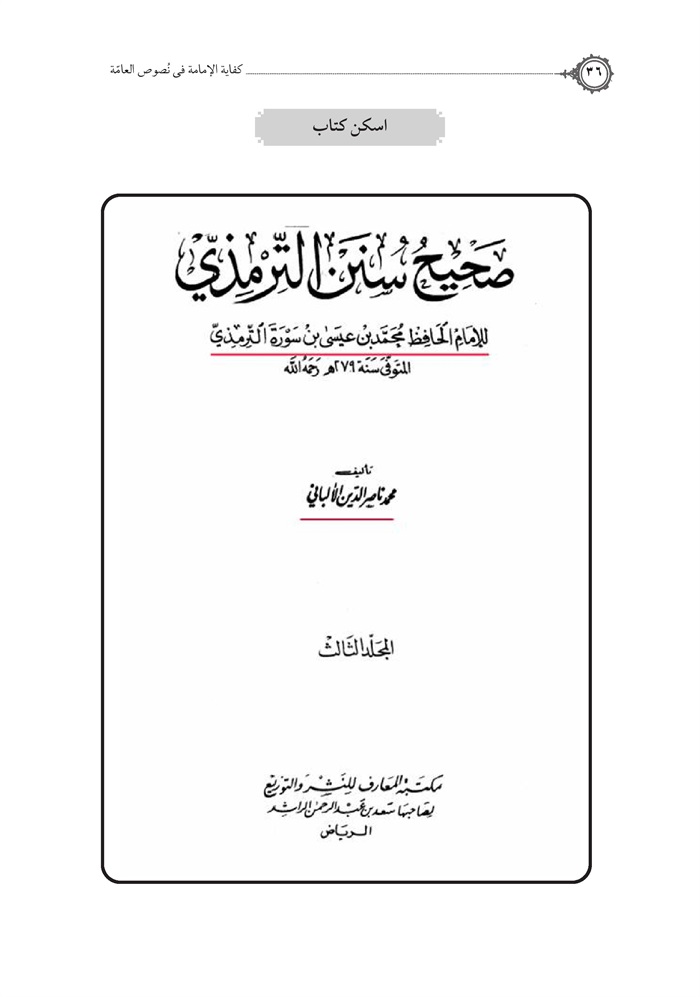 40. صحیح سنن الترمذی، المؤلف: محمد ناصر الدين الألباني (المتوفی: 1420ق) الناشر: مكتبة المعارف - الرياض.