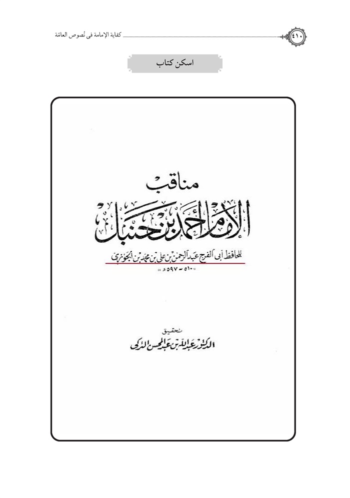 65. مناقب الإمام أحمد بن حنبل، المؤلف: جمال الدين أبو الفرج عبد الرحمن بن علی بن محمد الجوزي (المتوفى: 597 ،ق)، المحقق: د. عبد الله بن عبد المحسن التركى الناشر: دار هجر، الطبعة الثانية 1409 ق، عدد الأجزاء: 1.
