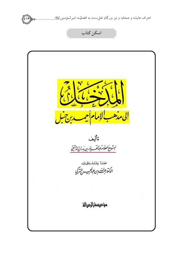 52. المدخل إلى مذهب الإمام أحمد بن حنبل، المؤلف: عبد القادر بن أحمد بن مصطفى بن عبد الرحيم بن محمد بدران (المتوفی: 1346 ق) ، المحقق: د. عبد الله بن عبد المحسن التركي، الناشر: مؤسسة الرسالة - بيروت الطبعة الثانية، 1401، عدد الأجزاء: 1.