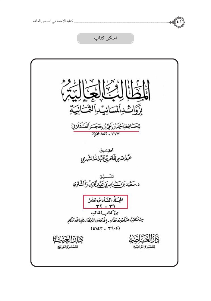 59. المطالب العالية بزوائد المسانيد الثمانية، المؤلف: أبو الفضل أحمد بن علی بن محمد بن أحمد بن حجر
