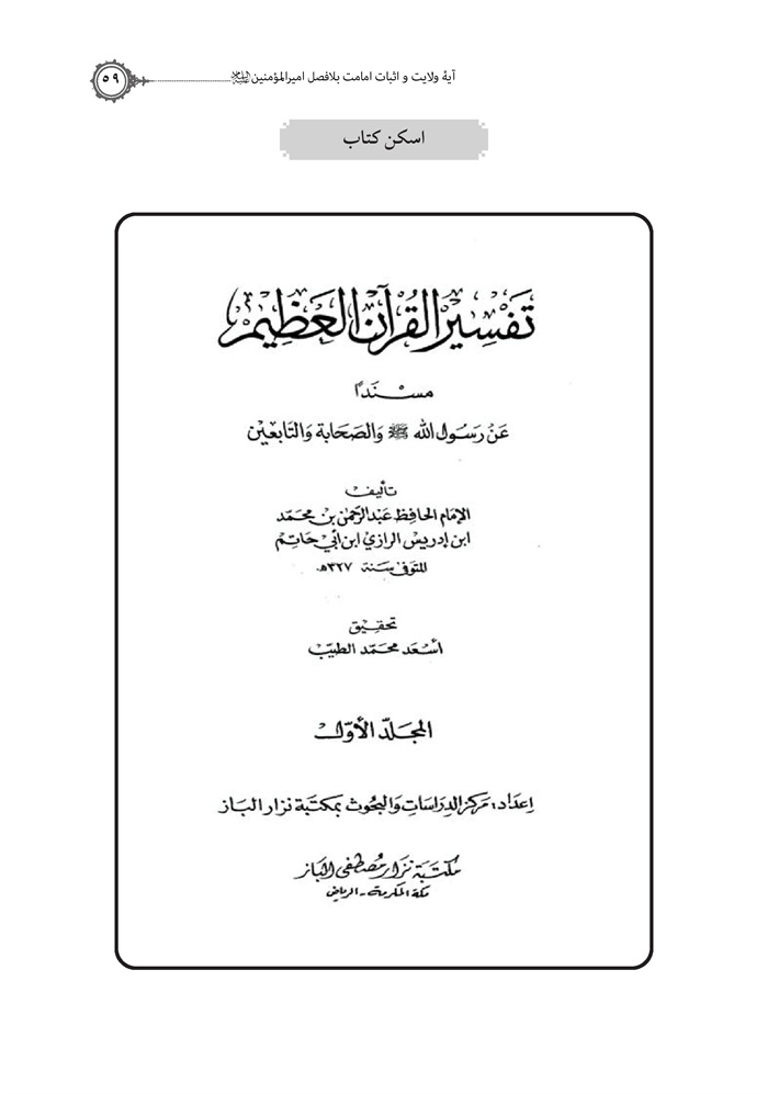 التميمي، الحنظلي الرازي ابن أبي حاتم (المتوفى: 327 ق) ، المحقق: أسعد محمد الطيب، الناشر: مكتبه نزار مصطفى الباز - المملكة العربية السعودية، الطبعة الثالثة – 1419 ق.