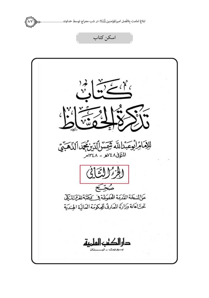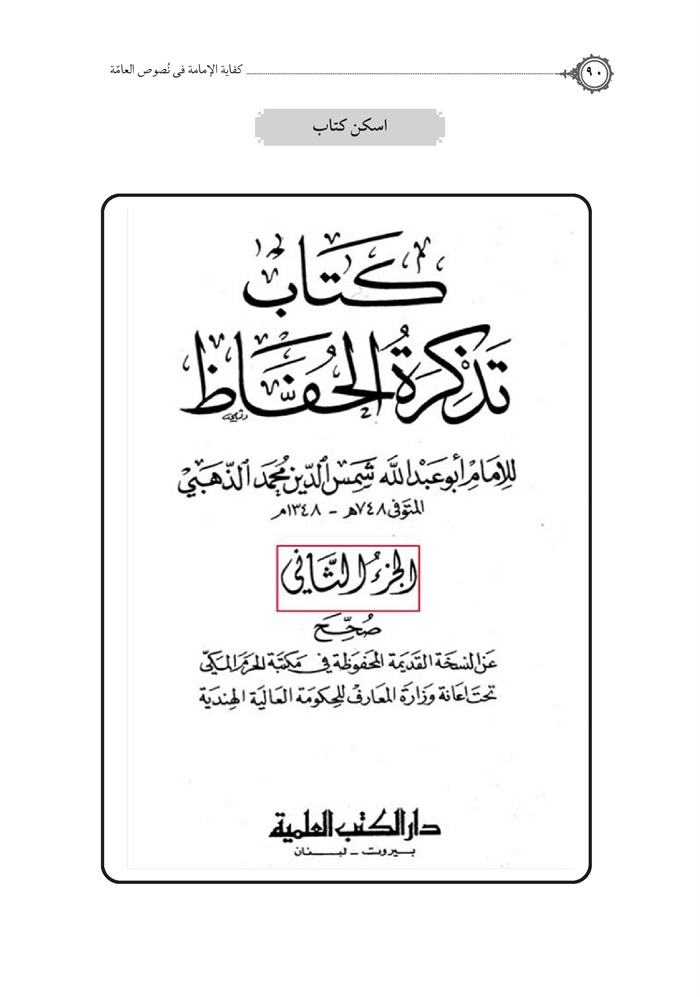 14. تذكرة الحفاظ، المؤلف : شمس الدين أبو عبد الله محمد بن أحمد بن عثمان بن قايماز الذهبي (المتوفى: 748،ق، الناشر: دار الكتب العلمية بيروت - لبنان، الطبعة الأولى، 1419ق - 1998م. عدد الأجزاء:4.
